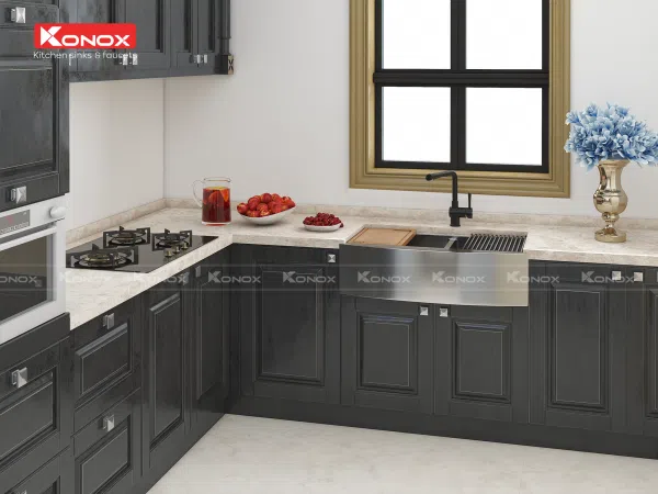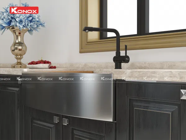 Apron Sinks (hay còn gọi Farmhouse Sinks) – dòng sản phẩm được Konox lấy cảm hứng, phát triển từ căn bếp nông trại nơi miền quê yên bình của Pháp, Ý, Anh,…- gian bếp là trái tim của ngôi nhà phong cách đồng quê.