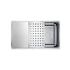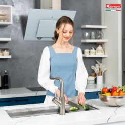 - Thiết kế hiện đại với gờ hạ bậc – tích hợp phụ kiện thông minh: Siphon, giá úp bát inox, chậu rửa nhỏ, thớt inox, thớt inox lỗ