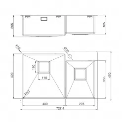 - Kích thước chậu : W727.4 x D470 x H205/185 mm