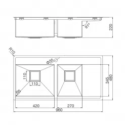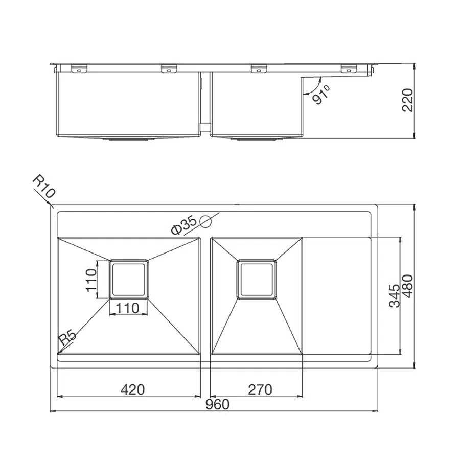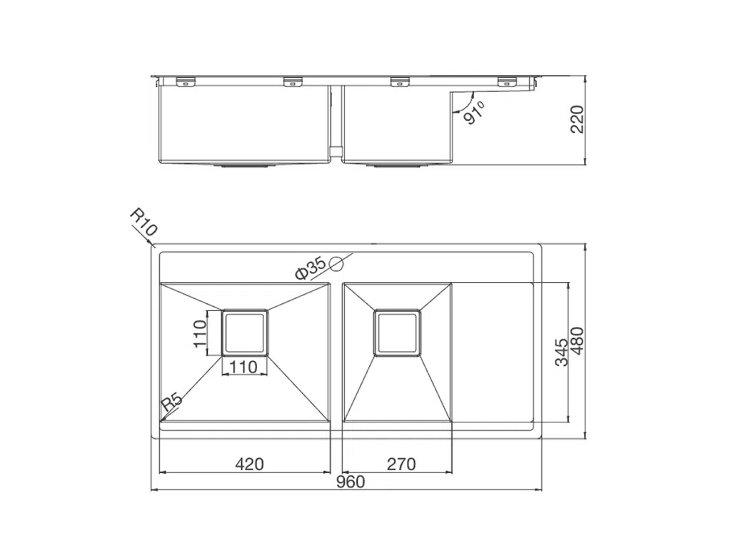 KÍCH THƯỚC SẢN PHẨM 960R x 480S x 220C mm