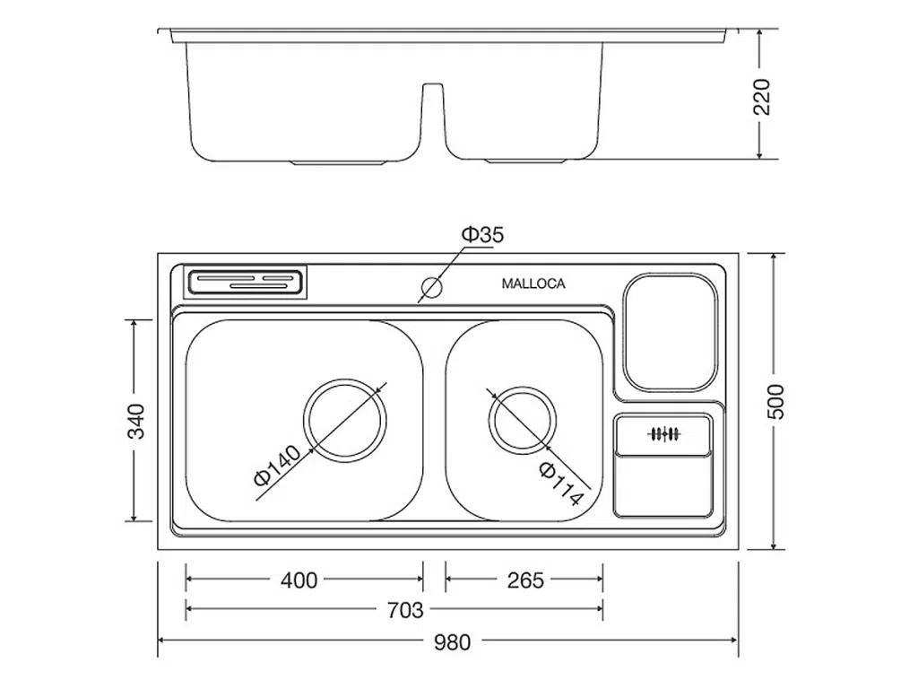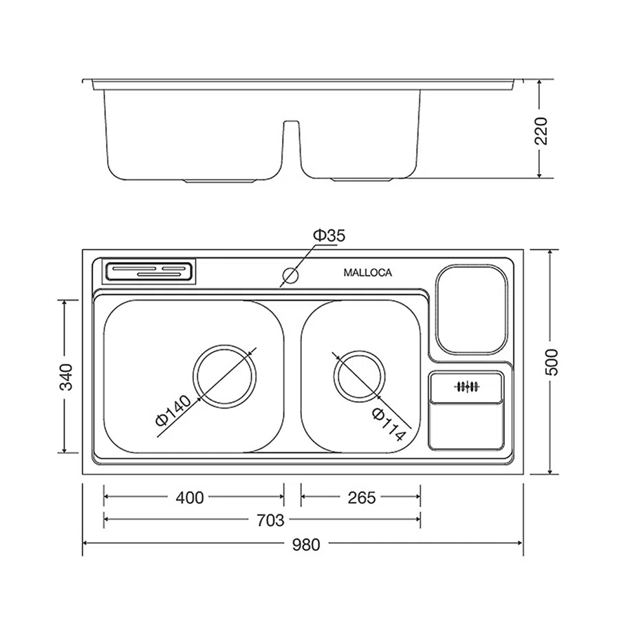 CHẬU RỬA CHÉN MALLOCA MS 8809