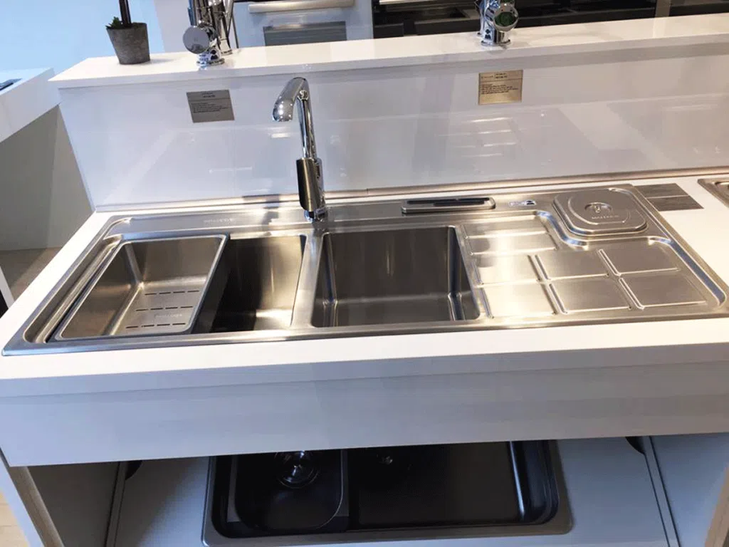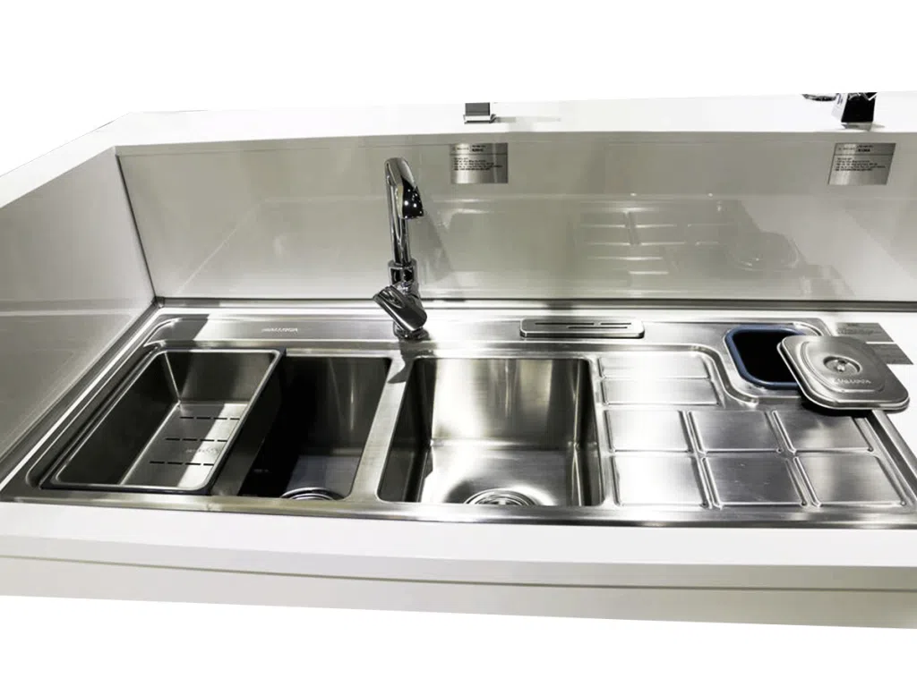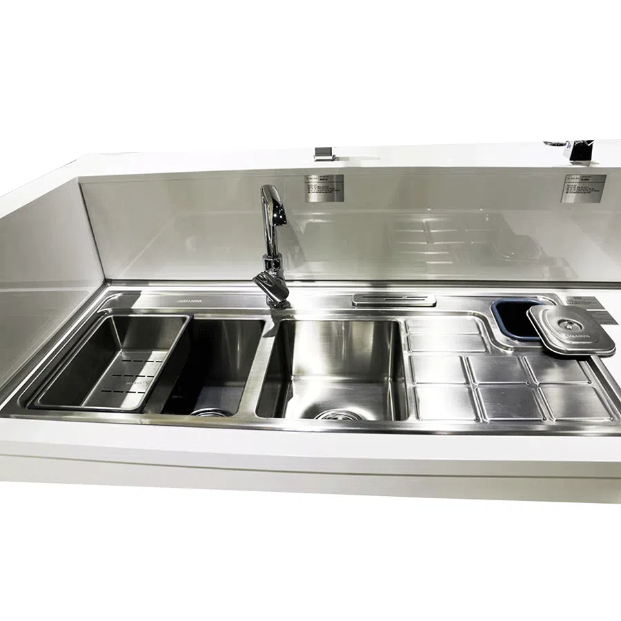 Rổ lọc rác bằng inox tiện lợi, chống ngưng tụ nước tránh tình trạng ẩm mốc. Bộ xả thông minh ngăn mùi hiệu quả