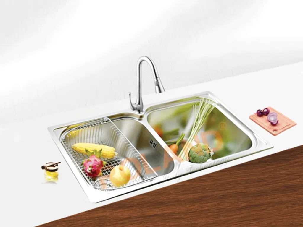 Sản phẩm chậu rửa bát hai hố ROLAND B8046 là dòng chậu rửa cao cấp được sản xuất theo công nghệ Ý. Chậu rửa bát không chỉ thu hút người dùng bởi Chất liệu Inox cho bề mặt sáng bóng dễ lau chùi mà còn thu hút được nhiều khách hàng bởi sự thiết kế tinh tế, đa dạng về mẫu mã và các tiện ích mà chậu mang lại.