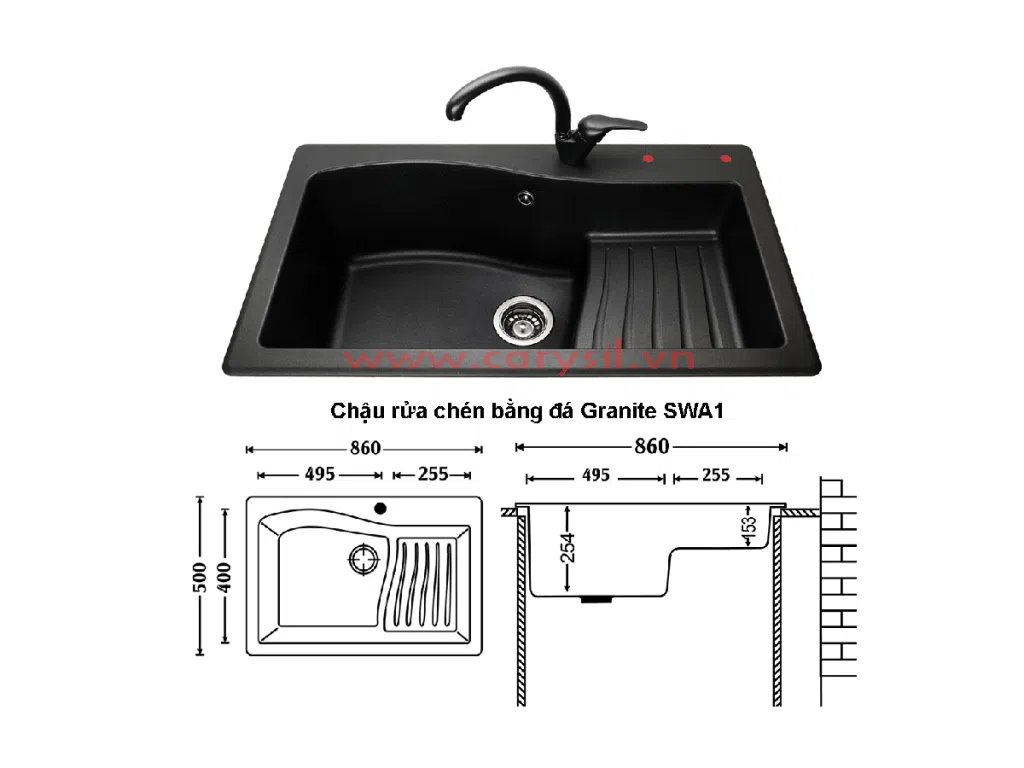 Thông Tin Kỹ Thuật Chậu Rửa Chén Đá Granite Carysil SWA1