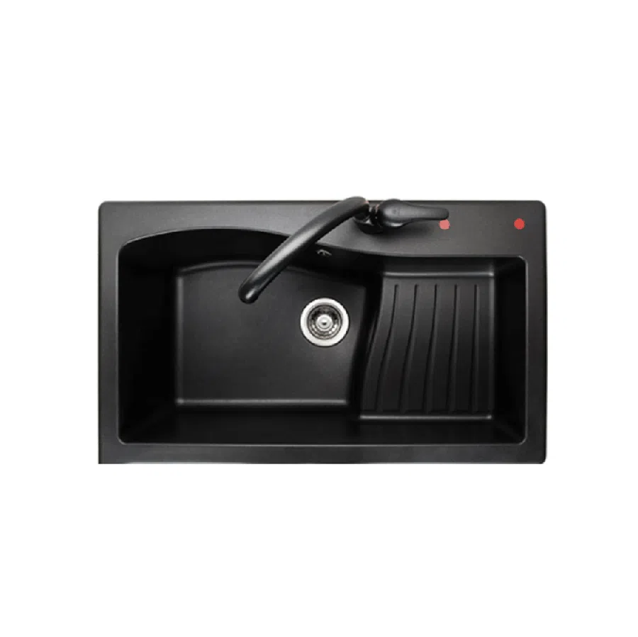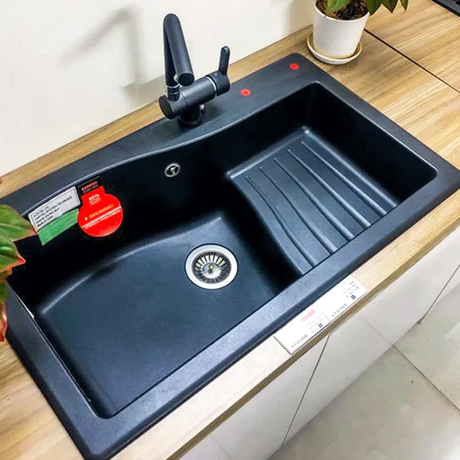 Chậu đá granite Carysil SWA1 là mã chậu rửa chén đơn có thiết kế khá đặc biệt, khi trong chậu có hẳn 1 bàn chờ nhỏ có thể đủ chỗ cho khoảng 6 cái ly nước, hoặc 1 rổ rau củ loại vừa. Chậu có thiết kế khá lạ và độc đáo, cùng diện tích 860x500mm nên phù hợp với các gia đình trẻ, các gia đình ít người hay các thiết kế bàn đảo rộng lớn.