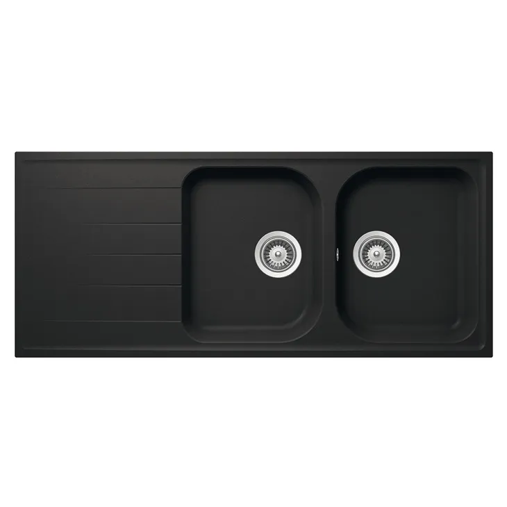 – Chậu rửa bằng đá, 2 hố chậu bằng nhau + cánh chờ, màu đen