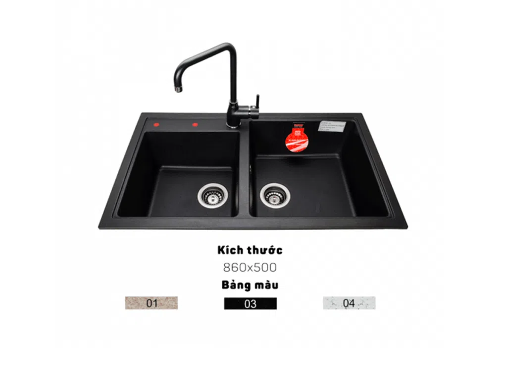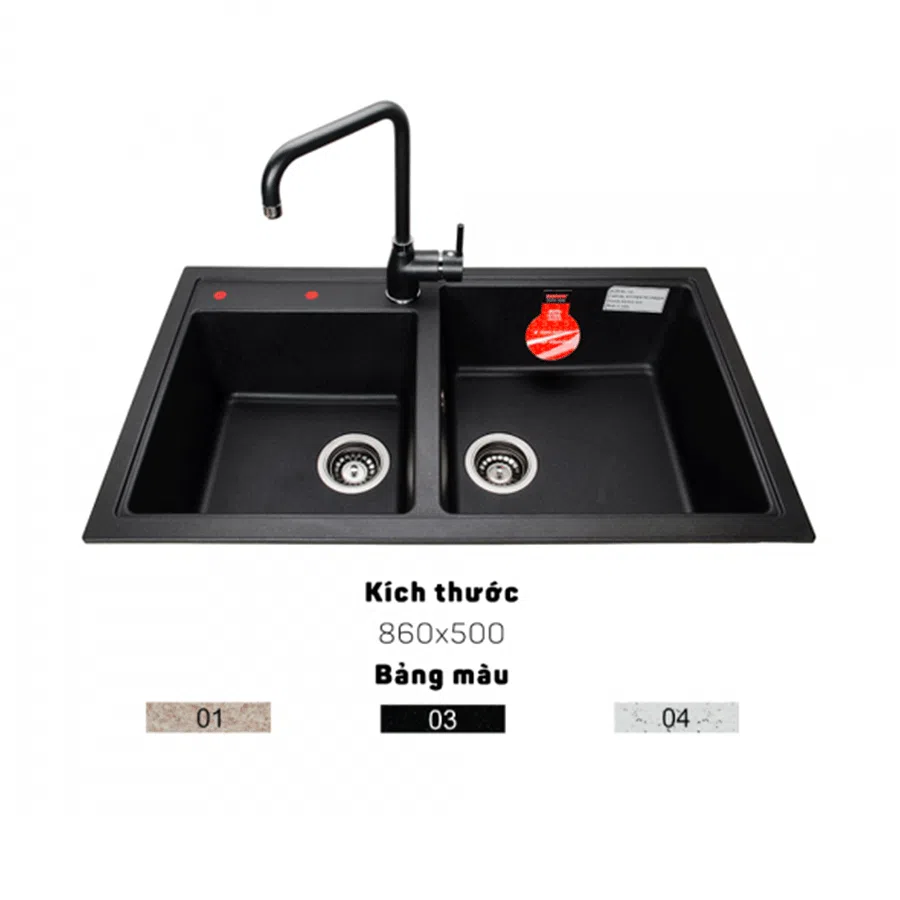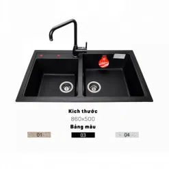 Hình ảnh kỹ thuật chi tiết của sản phẩm chậu đá granite 2 hố VIC3.