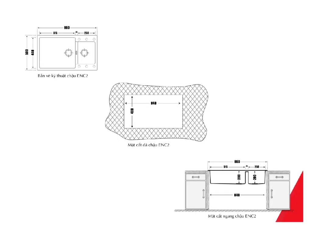Thông Tin Kỹ Thuật Chậu Rửa Chén Đá Granite Carysil ENC2