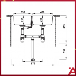 – Chậu rửa 02 hố chậu : 01 hố lớn + 01 hố trung