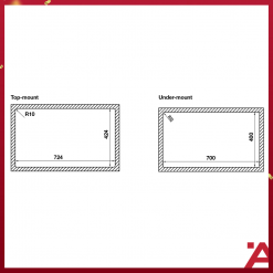 + Lắp nổi: D724 x R424mm