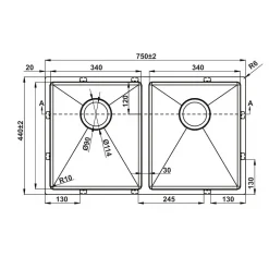 • Kích thước bồn : D340 x R400mm/D340 x R400mm