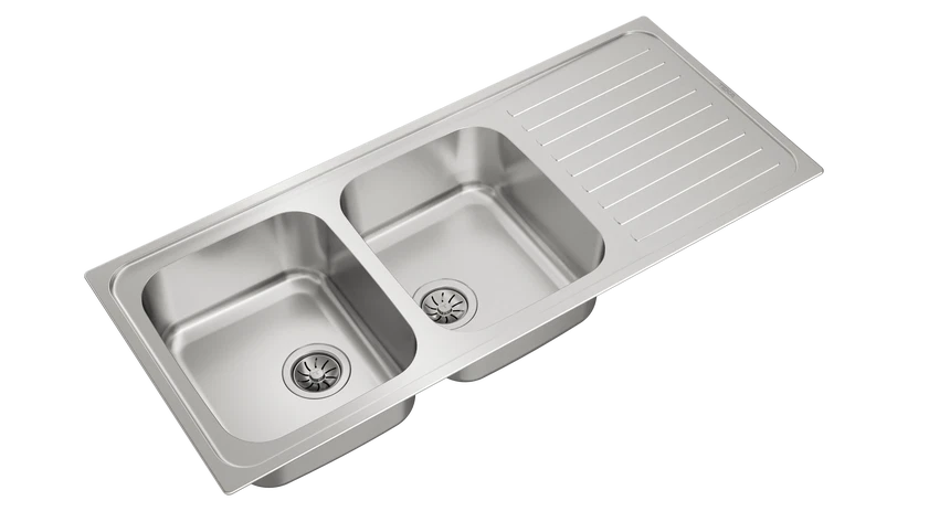 • Kiểu dáng 2 hộc rửa + 1 bàn chậu có thể đảo chiều