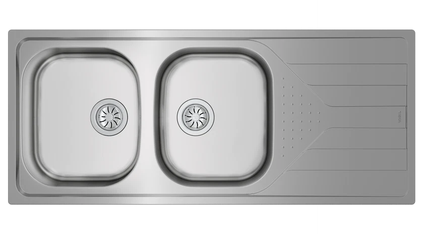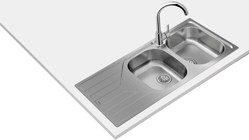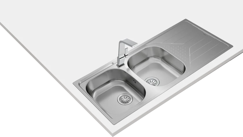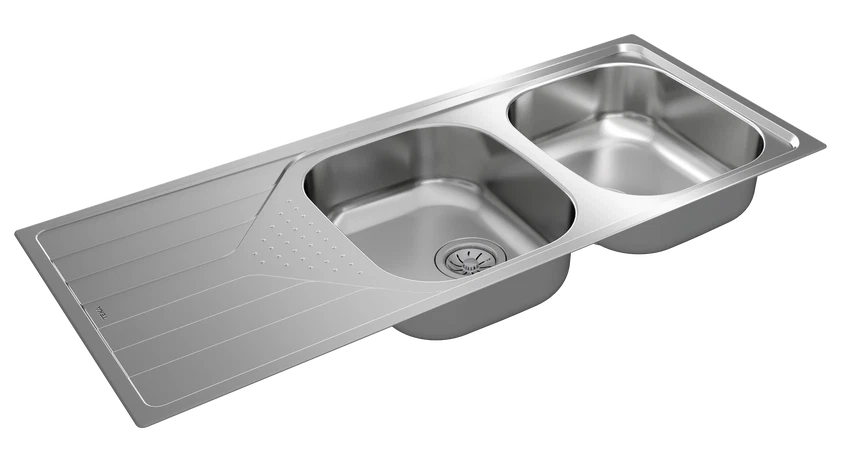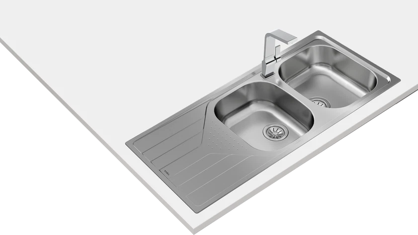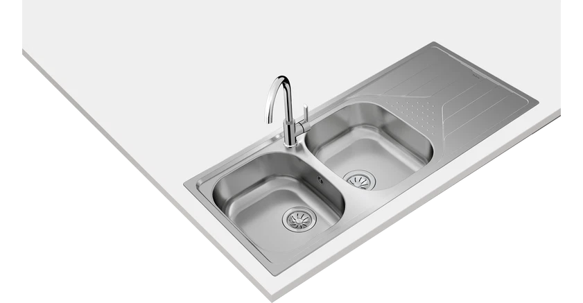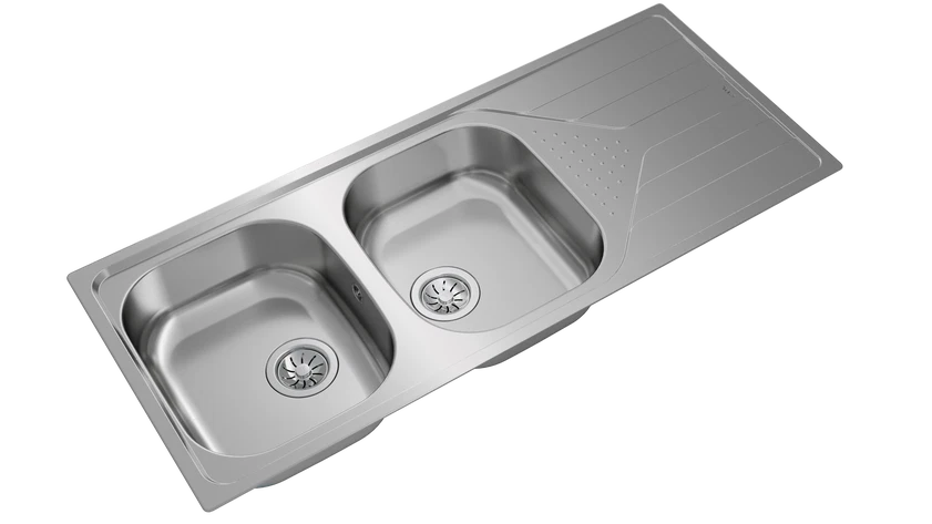 - Kiểu dáng 2 hộc rửa và 1 bàn chậu có thể đảo chiều