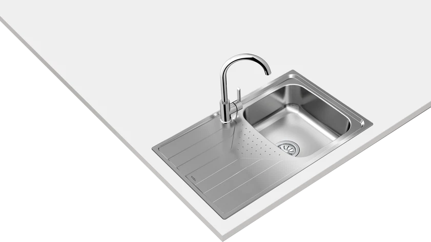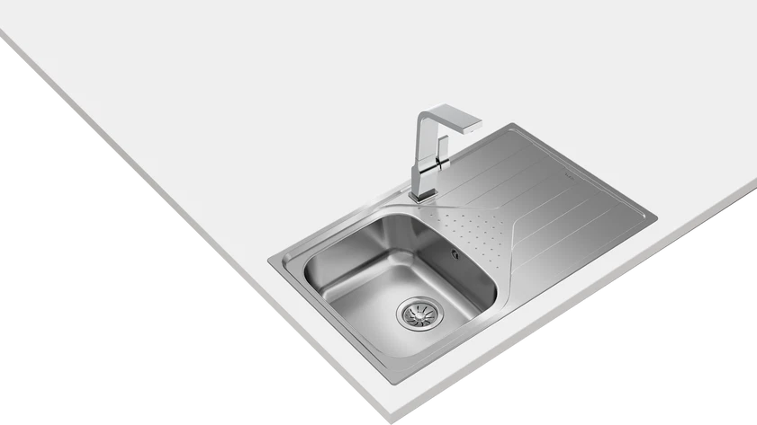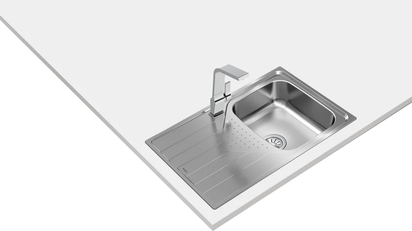 - Kiểu dáng 1 hộc rửa và 1 bàn chậu có thể đảo chiều