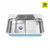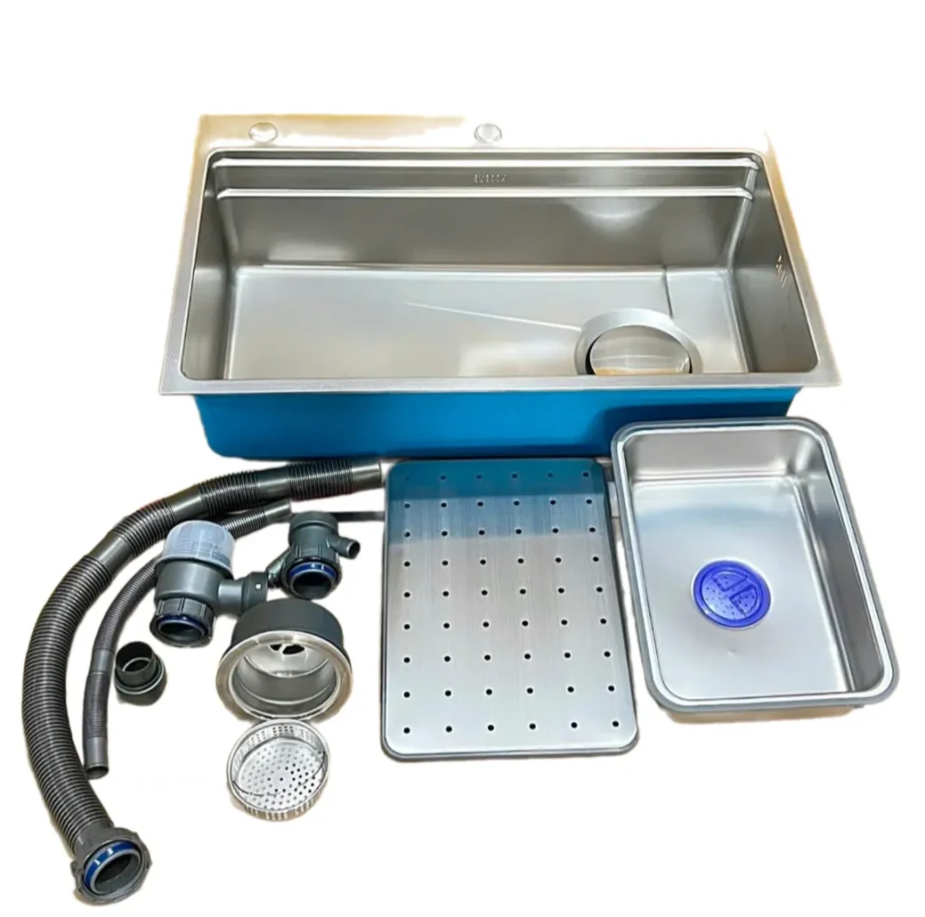 - Khay hứng nước inox nhỏ đi kèm chậu tiện lợi cho việc hứng nước, úp chén bát nhỏ, để ráo nước rau củ quả,…