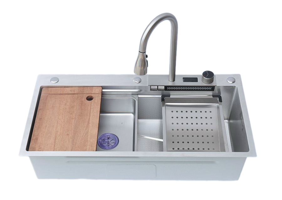 • Chậu vòi rửa chén nhiệt độ Austar AU-9046ND 304 bao gồm: Chậu rửa chén, vòi rửa chén nóng lạnh, khay hứng nước inox nhỏ, khay mưa, thớt gỗ
