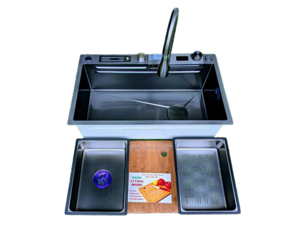 • Chậu vòi rửa chén Austar AU-7846VDND 304 bao gồm: Chậu rửa chén, vòi rửa chén nóng lạnh, khay hứng nước inox nhỏ, khay mưa, thớt gỗ