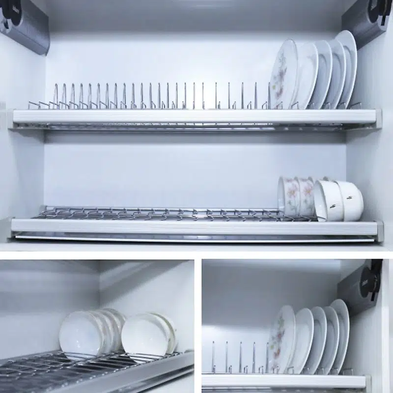 - Chỉ có 1 tầng đựng chén bát kèm khay hứng nước bên dưới