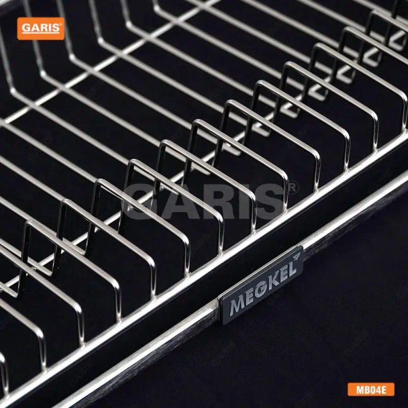 Hãng Garis đã phát triển và cho ra đời sản phẩm phụ kiện tủ bếp Giá bát đĩa đa năng cố định, nan vuông kết hợp tròn, inox 304, bề mặt điện hóa xước mờ, 2 tầng.