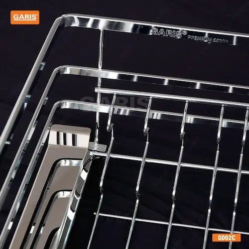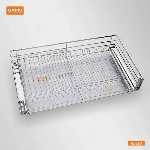 Giá bát đĩa Garis GD02.60C là nan vuông, inox 304, bề mặt mạ chrome 5 lớp, dùng cho cánh kéo
