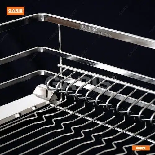 Giá bát đĩa Garis GD02.90E là nan vuông, inox 304, bề mặt điện hóa xước mờ, dùng cho cánh kéo