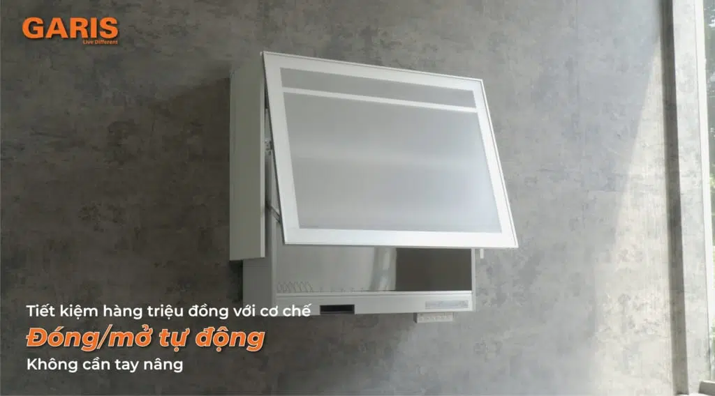 Đóng/mở tự động khi lên xuống. Giúp bạn lấy và đặt bát đĩa mà không cần chạm tay vào cánh. Đặc biệt, khách hàng sẽ không phải mua thêm tay nâng, giúp tiết kiệm hàng triệu đồng. Ngoài ra, ngay cả khi mất điện, bạn vẫn có thể lấy bát đĩa một cách dễ dàng.
