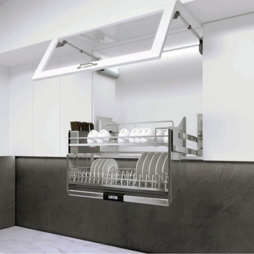 Giá bát nâng hạ được thiết kế đặc biệt dành cho các tủ bếp treo tường, giúp tối ưu hóa không gian lưu trữ mà không làm ảnh hưởng đến sự tiện lợi khi sử dụng.