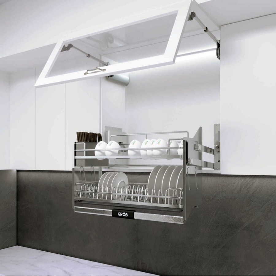 Giá bát nâng hạ không chỉ giúp tiết kiệm không gian và tăng cường thẩm mỹ mà còn mang lại sự tiện lợi và an toàn khi sử dụng, đặc biệt cho gia đình có trẻ em hoặc người lớn tuổi.