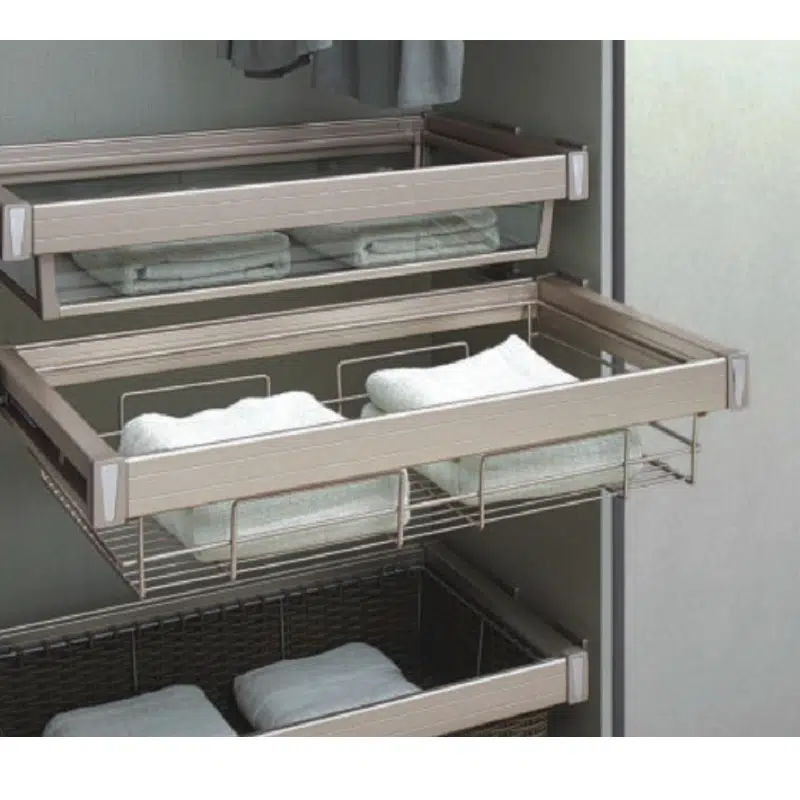 - Được thiết kế bằng những thanh hợp kim nhôm nan tròn, thông thoáng dễ dàng quan sát quần áo khi không kéo giỏ nan ra phía ngoài.