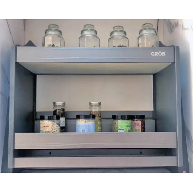 - Không những giúp người dùng lưu trữ gia vị gọn gàng sạch sẽ, giá gia vị nâng hạ điện cảm ứng Grob GP1-70 còn là điểm nhấn giúp không gian bếp trở nên sang trọng ấn tượng hơn rất nhiều.