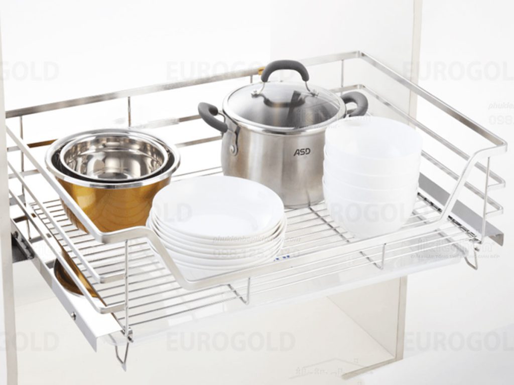 Ưu điểm của giá xoong nồi inox mờ cao cấp, gắn cánh âm tủ