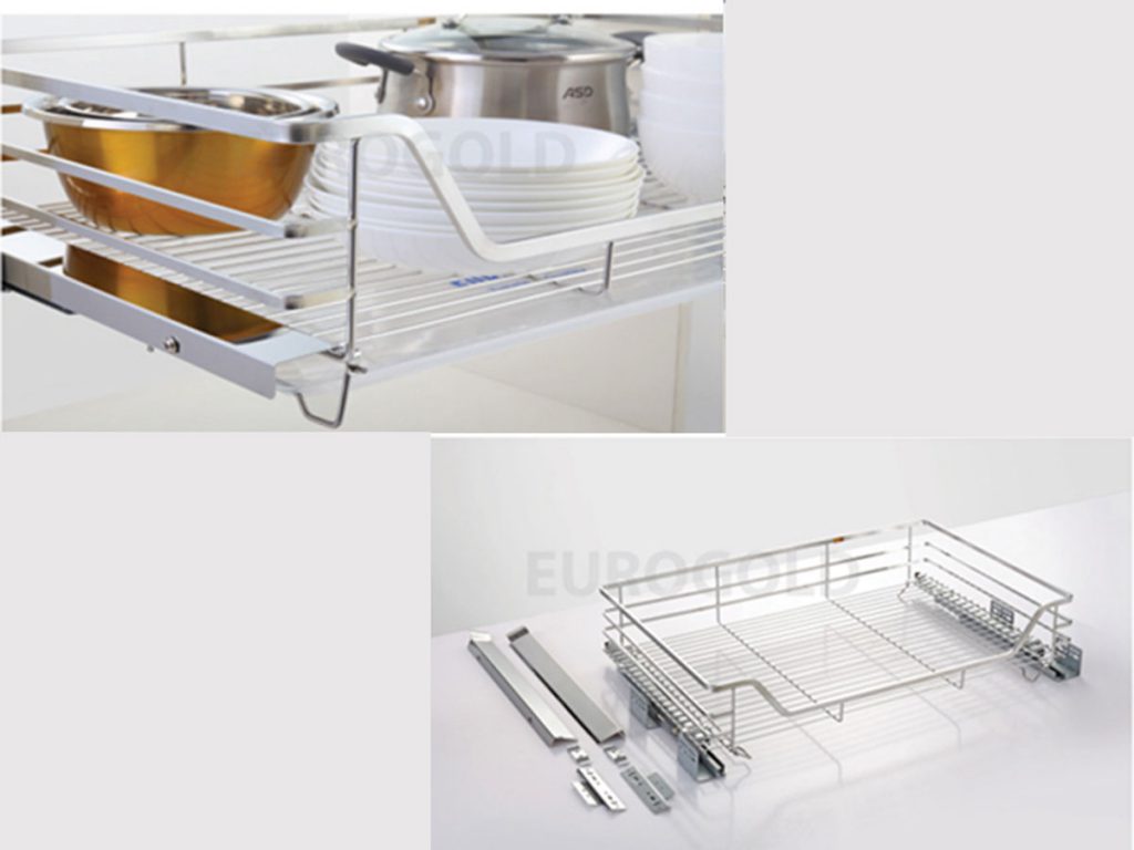 Giá xoong nồi inox mờ cao cấp, gắn cánh âm tủ là dòng phụ kiện tủ bếp cao cấp tại Eurogold được thiết kế nhằm giúp cho các mẹ nội trợ linh hoạt hơn trong việc cất giữ đồ đạc trong nhà bếp đồng thời làm cho nó trở nên đẹp và sang trọng hơn.