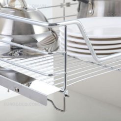 Giá xoong nồi inox nan âm tủ gắn cánh, ray giảm chấn Eurogold EG6180 được thiết kế nhằm giúp cho các mẹ nội trợ linh hoạt hơn trong việc cất giữ đồ đạc trong nhà bếp đồng thời làm cho nó trở nên đẹp và sang trọng hơn.