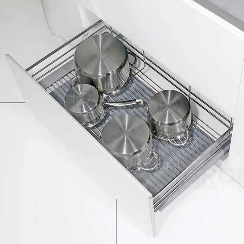 - Với bộ gá này bạn có thể lắp đặt thêm cánh kéo với mọi chất liệu (gỗ, nhôm,…) theo đúng sở thích của bạn. Chỉ trong tích tắc thì giá để xoong nồi của bạn có thể hô biến thành một ngăn kéo thật linh hoạt, gọn gàng, đẹp mắt và vô cùng đồng bộ, sang trọng.