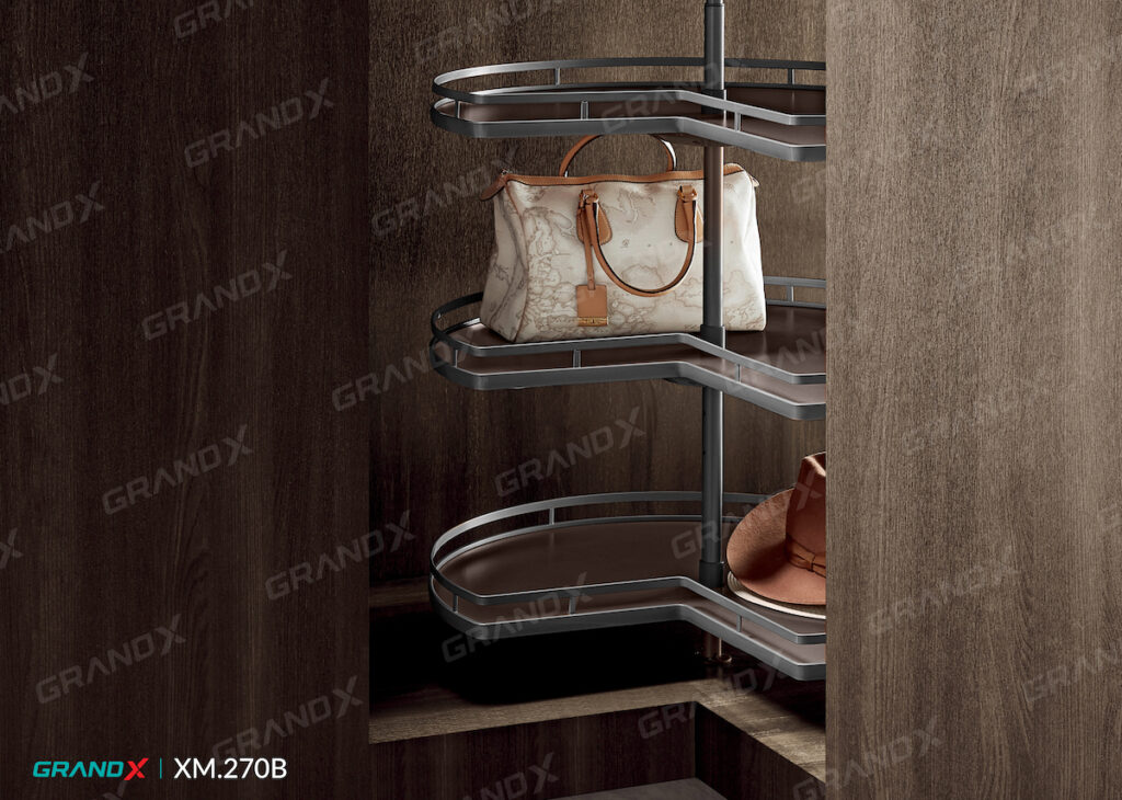 - Kệ góc 270° 3 tầng đa năng được lắp đặt trong góc tủ quần áo