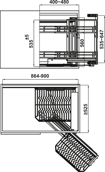 - Tận dụng không gian góc bếp để đựng đồ. Cơ chế xếp tầng cho phép người sử dụng dễ dàng lấy đồ đã cất ở khu vực góc một cách nhanh chóng và thuận tiện.