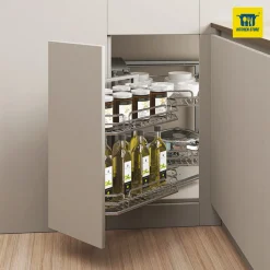 Với thiết kế độc đáo và cơ chế thông minh, giỏ góc có thể dễ dàng biến những góc bếp thường bị bỏ qua của bạn thành nơi lý tưởng để cất giữ dụng cụ nấu nướng và các vật dụng khác.