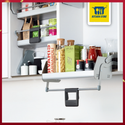 - Khi kéo kệ xuống dưới, kệ vẫn cố định tại vị trí để chất đồ vật, ngay cả khi kệ trống