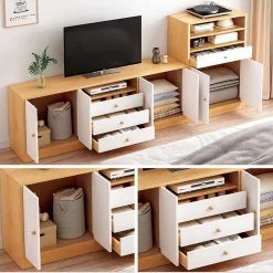 Ngoài ra, khi chọn kệ tivi gỗ công nghiệp, khách hàng có thể thoải mái chọn màu sắc và bề mặt gỗ vì loại gỗ này có bề mặt phẳng, nên dễ sơn hoặc dán ép theo ý khách hàng. Các vật liệu phủ trên bề mặt hiện có là Melamine, Laminate. Veenner, Acrylic bóng.