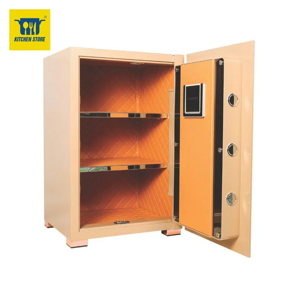 - Về Thẩm Mỹ (Aesthetics): Điểm mạnh nổi bật của KL-75H8 là Màu Vàng Cát Sa Mạc (Gold). Màu sắc này tạo điểm nhấn cá tính và xa hoa, lý tưởng cho những không gian nội thất cần sự ấm áp và nổi bật, biến két sắt thành một món đồ trang trí cao cấp.