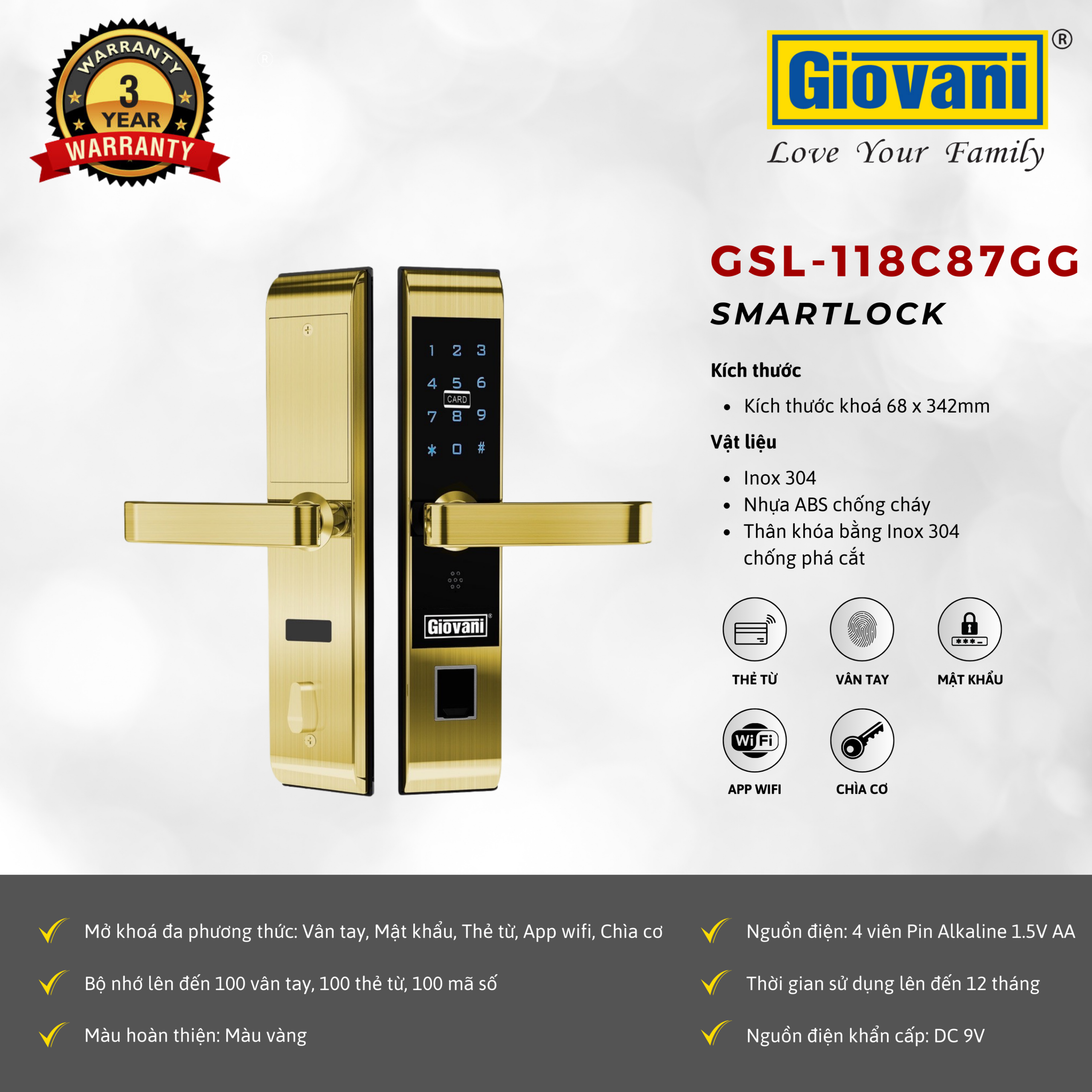 Khóa Cửa Thông Minh Giovani GSL-118C87GG: An Toàn Đột Phá, Tiện Nghi Vượt Trội