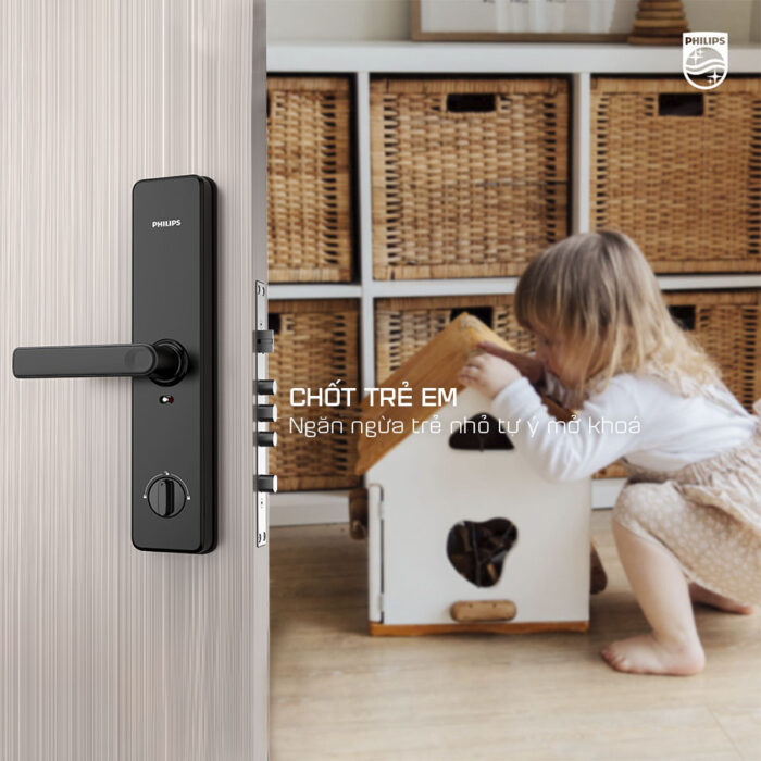 Ngoài ra, một tính năng thân thiện với người dùng, được nhiều gia đình quan tâm đó chính là chốt trẻ em cũng có mặt trên siêu phẩm này. Chiếc chốt này sẽ ngăn ngừa trẻ nhỏ tự ý mở khoá từ bên trong.