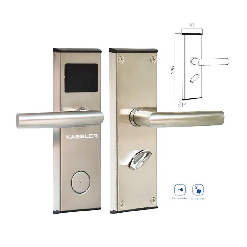 Cách sử dụng khóa điện tử Kassler KL-383I rất đơn giản, bạn có thể dùng thể từ để mở khóa một cách tiện lợi, nhanh gọn. Trong trường hợp bạn quên thẻ từ hoặc trong tình trạng khóa điện tử Kassler KL-383I hết pin không thể mở khóa bằng thẻ từ thì bạn có thể mở khóa bằng chìa khóa cơ ( chống sao chép ).