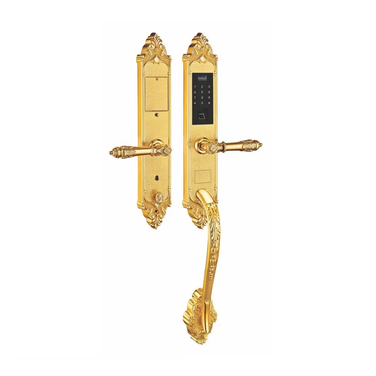 Khóa vân tay Kassler KL-969G Mạ vàng 24k được thiết kế với đường nét hoa văn tinh tế, vừa mang tính cổ điển, vừa mang tính hiện đại, rất ít có sản phẩm nào thu hút khách hàng từ cái nhìn đầu tiên như Khóa vân tay Kassler KL-969G- Mạ vàng 24k đồng thời thiết bị mang ý nghĩa phong thủy cực tốt cho gia chủ hướng lộc vào nhà ( cửu lộc cửu).