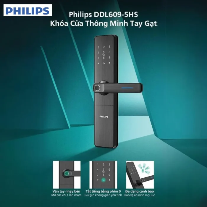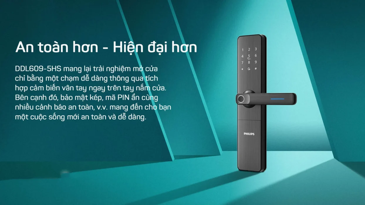 Khóa vân tay Philips DDL609-5HS là một trong những mẫu khóa cửa thông minh cao cấp Philips, được trang bị công nghệ tiên tiến giúp tăng cường bảo mật và mang lại sự tiện lợi tối đa cho người dùng. Với thiết kế hiện đại, sang trọng cùng nhiều tính năng mở khóa đa dạng, sản phẩm này là lựa chọn hoàn hảo cho căn hộ, biệt thự và văn phòng.