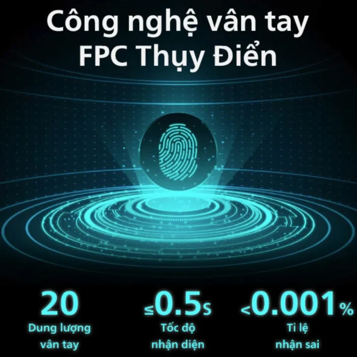 - Vân tay FPC Thụy Điển, giúp nhận diện nhanh chóng và chính xác trong 0.5 giây.