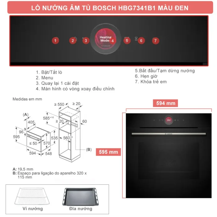Với 14 chế độ nấu và làm nóng khác nhau, Bosch HBG7341B1B đáp ứng mọi nhu cầu ẩm thực từ cơ bản đến chuyên sâu.