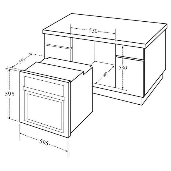 - Kích thước âm tủ: 560x583x550mm (CxRxS)