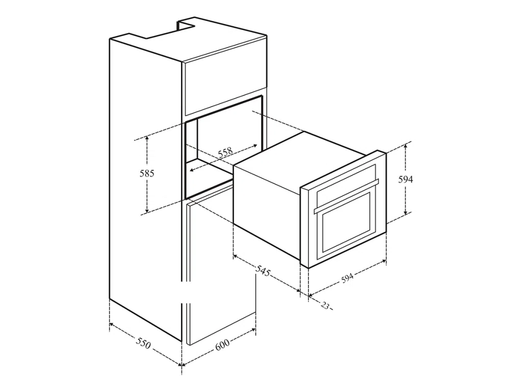 Kích thước lắp đặt (Cao x Rộng x Sâu) R558 x S590 x C585 mm