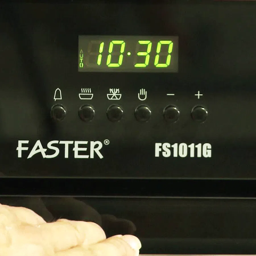 - Dung tích 67 lít: Lò nướng Faster FS–1011G được thiết kế với dung tích 67 Lít, khoang lò phẳng có kích thước vừa phải thích hợp dùng trong gia đình đông người hoặc dùng trong nhà hàng, tiệm bánh nhỏ. Lò có chuông báo tiện lợi.